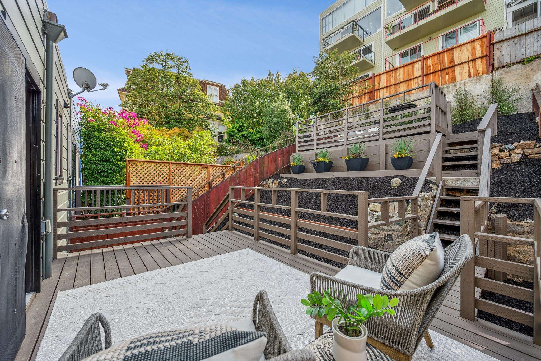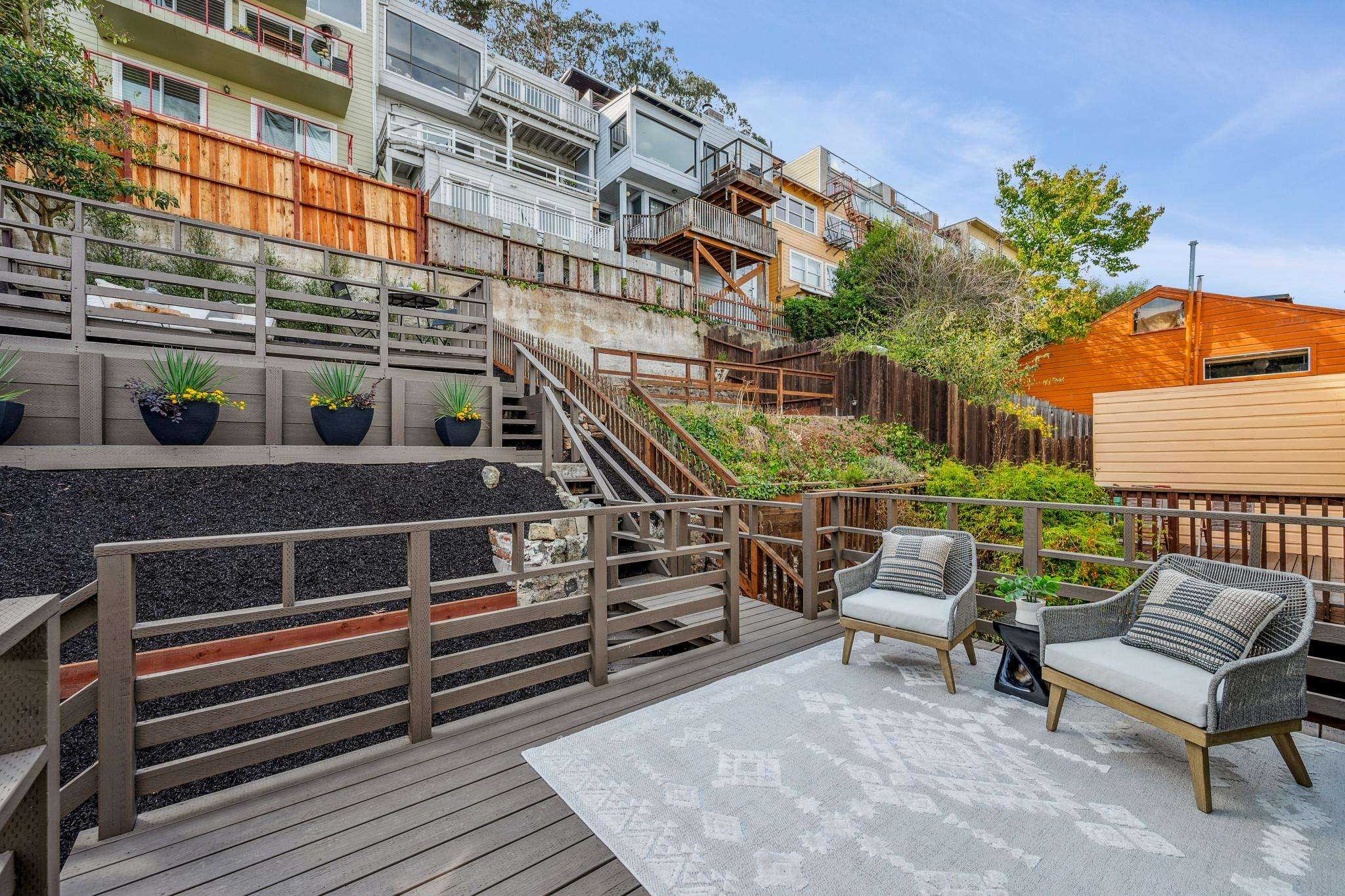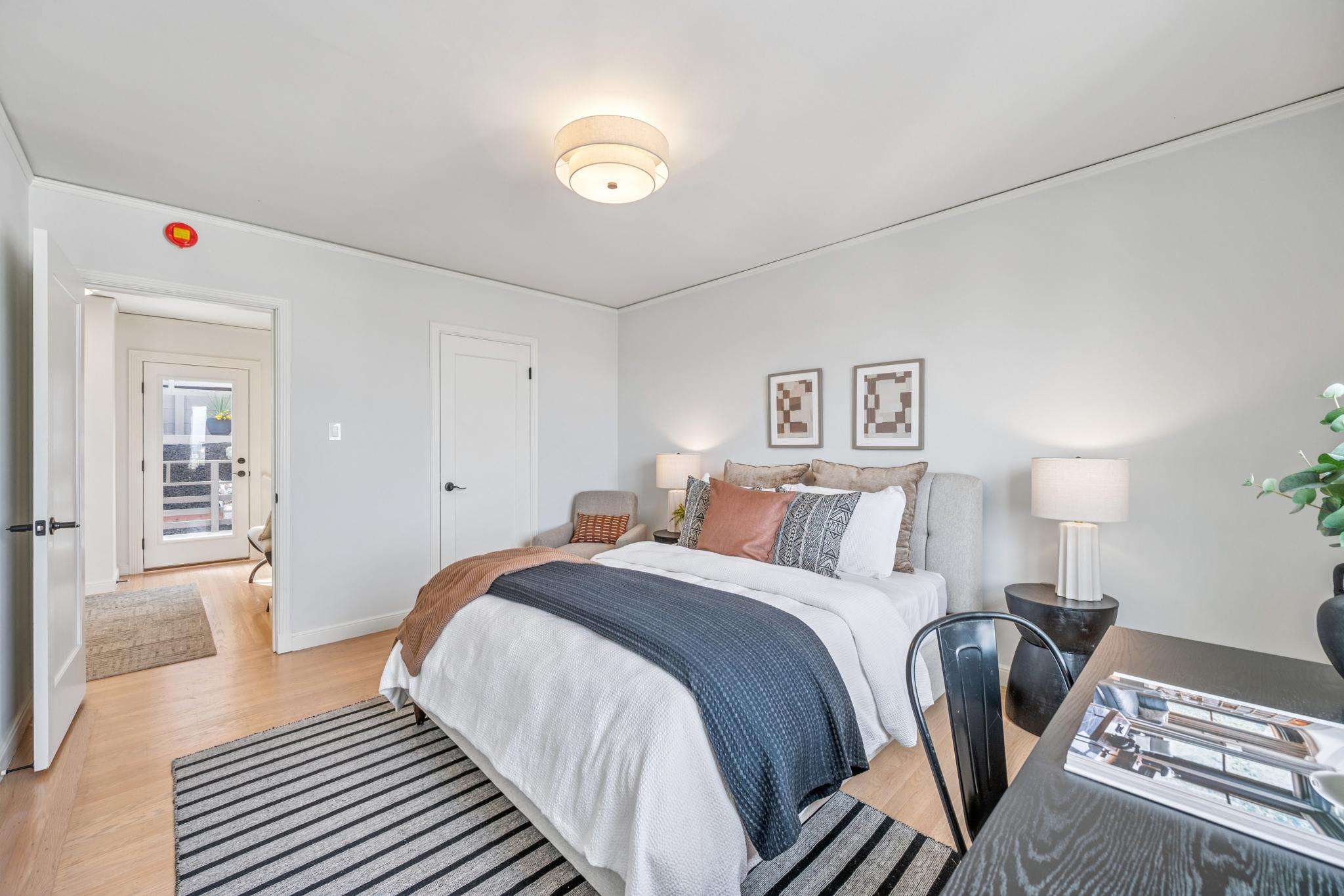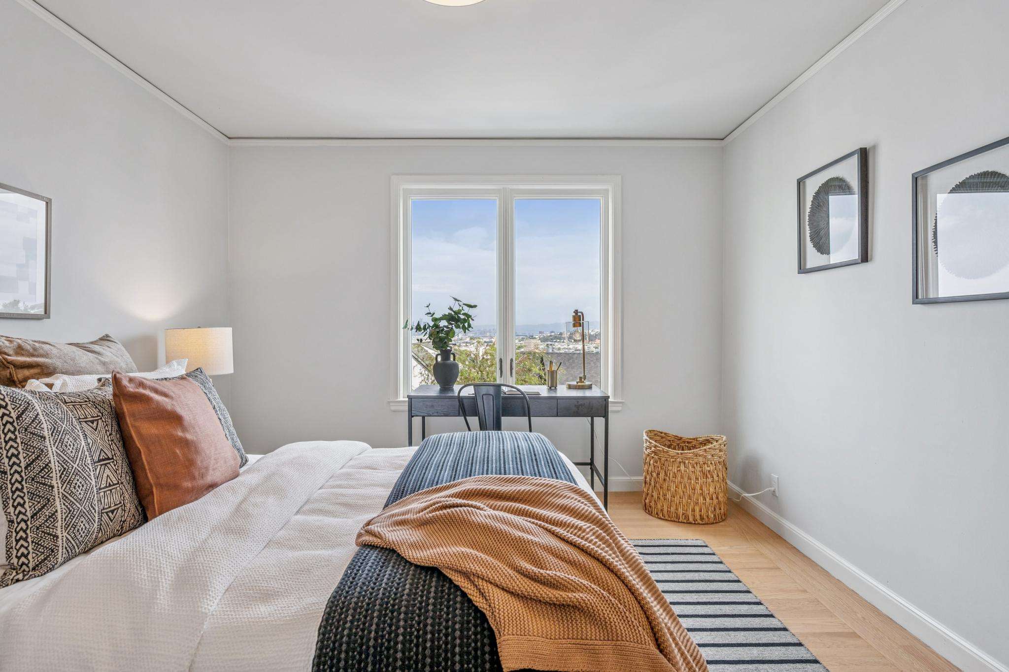 From the bedroom and upper deck, enjoy captivating views of the city skyline and the Bay—the perfect setting for a peaceful morning coffee or sunset unwind.